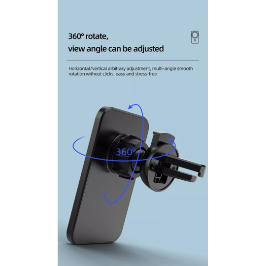Kvalitní výkonná bezdrátová magnetická nabíječka do auta s podporou Apple MagSafe. Vybavená dvěma držáky, zvolit tak můžete buď variantu do ventilace, nebo otočný a výsuvný držák s přísavkou.