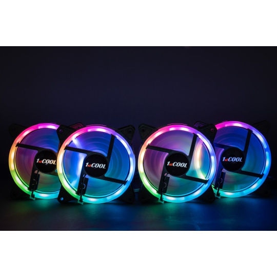 součástí výbavy je SET ventilátorů s adresovatelnými RGB LED diodami skládá se z 4*120mm RAINBOW (duhový) ARGB fan s možností propojení s Vaší základní deskou pomocí 3pin aRGB konektoru + nano/reset řadič (kompatipilní se systémy ASUS Aura Sync, MSI Mystic Light, GIGABYTE RGB Fusion i ASRock Polychrome Sync).