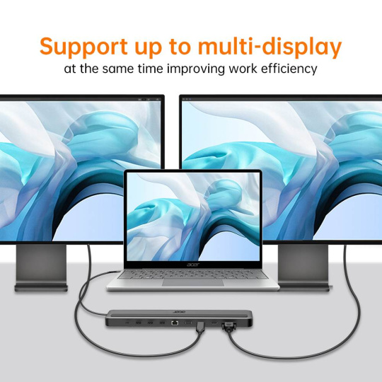 ACER 13in1 Type C Minidock: 3*USB3; 1*USB C; SD/TF; 2*HDMI; DP; RJ45; USB C; 3.5mm Audio