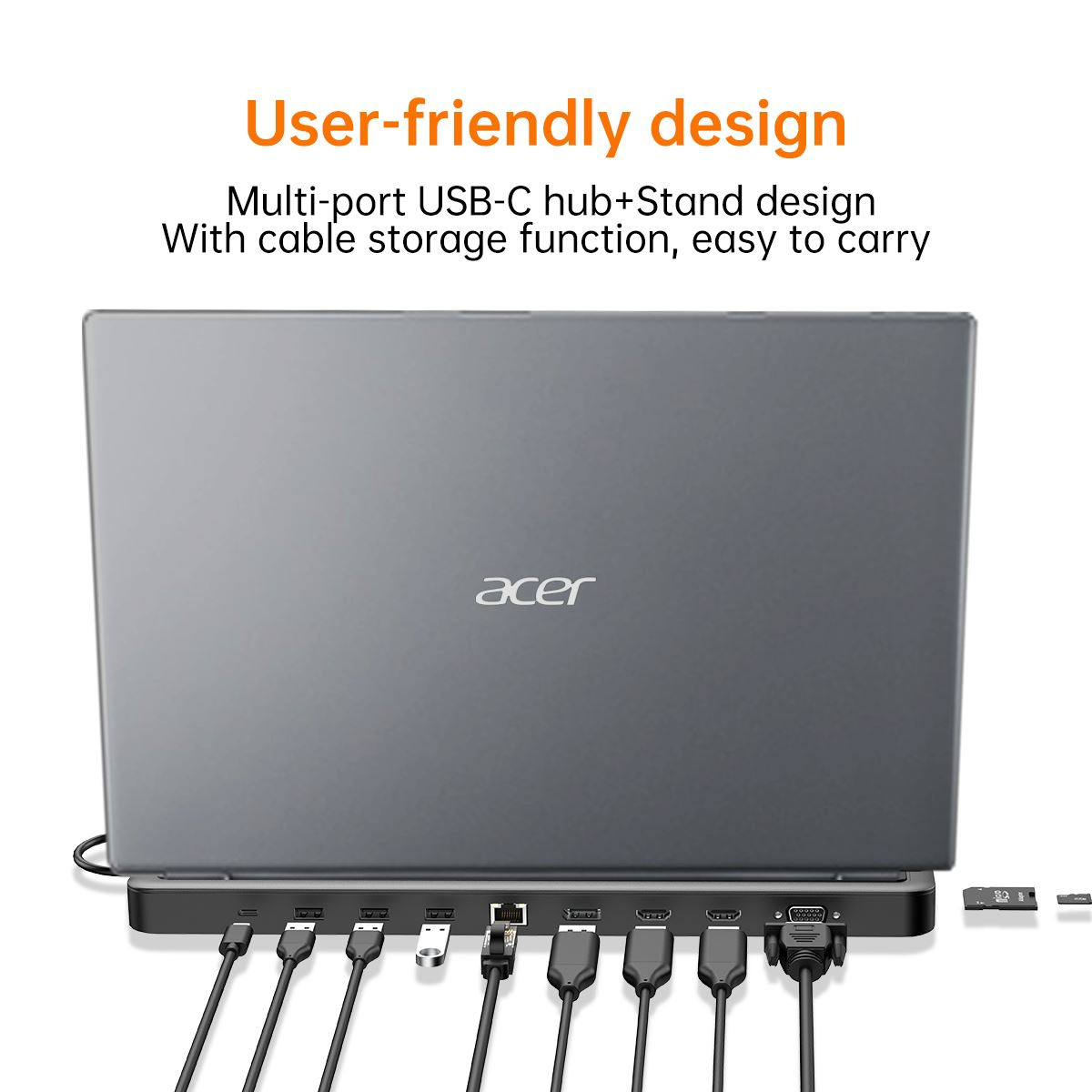 ACER 13in1 Type C Minidock: 3*USB3; 1*USB C; SD/TF; 2*HDMI; DP; RJ45; USB C; 3.5mm Audio