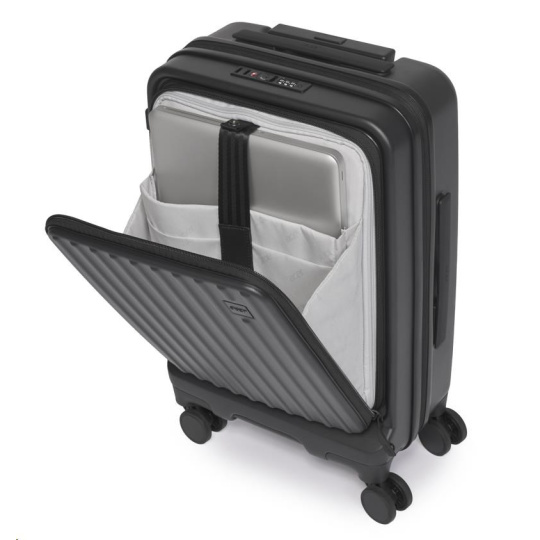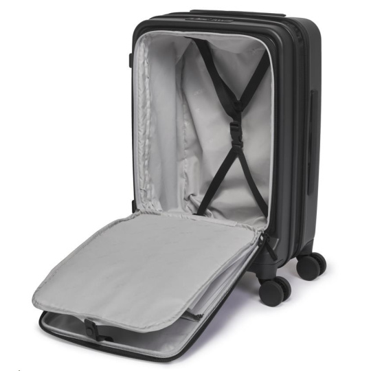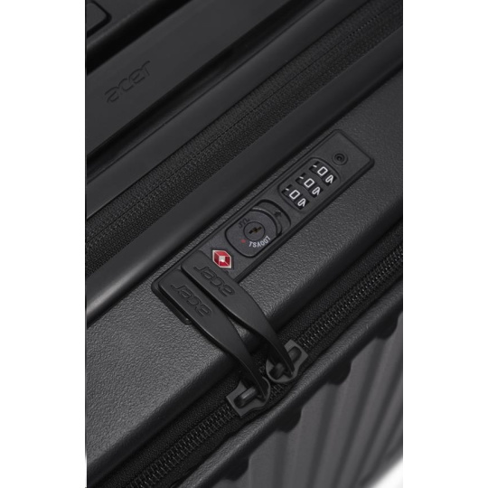 Acer Barcelona luggage 20", černý, pevný cestovní kufr, materiál: 100% recyklovaný PET, TSA kombinační zámek, přední otevírání, kapsa na notebook / tablet, 4 dvojité otočné kolečka, 53,5 x 20,5 x 35,5 cm, 3,1 kg
