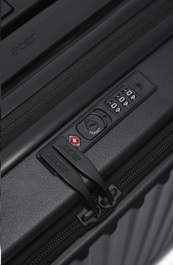 Acer Barcelona luggage 20", černý, pevný cestovní kufr, materiál: 100% recyklovaný PET, TSA kombinační zámek, přední otevírání, kapsa na notebook / tablet, 4 dvojité otočné kolečka, 53,5 x 20,5 x 35,5 cm, 3,1 kg