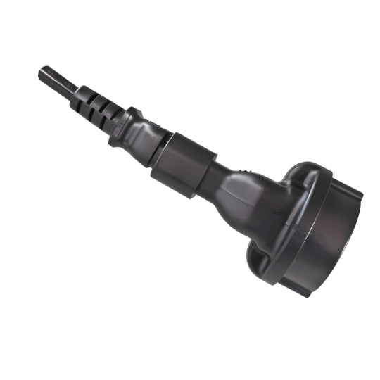 Napájecí adaptér v černém provedení pro UPC, se vstupním konektorem IEC C14 (max. 10 A) a výstupní zásuvkou SCHUKO CEE 7/3 (max. 16 A). Výstupní zásuvka je rovná, německého typu, s ochrannými plíšky po stranách, vhodná pro připojení vidlic vybavených zemnícími plíšky. Je velmi důležité zajistit, aby proud odebíraný ze zásuvky nikdy nepřekročil 10 A, aby nedošlo k přetížení vstupního konektoru C14.