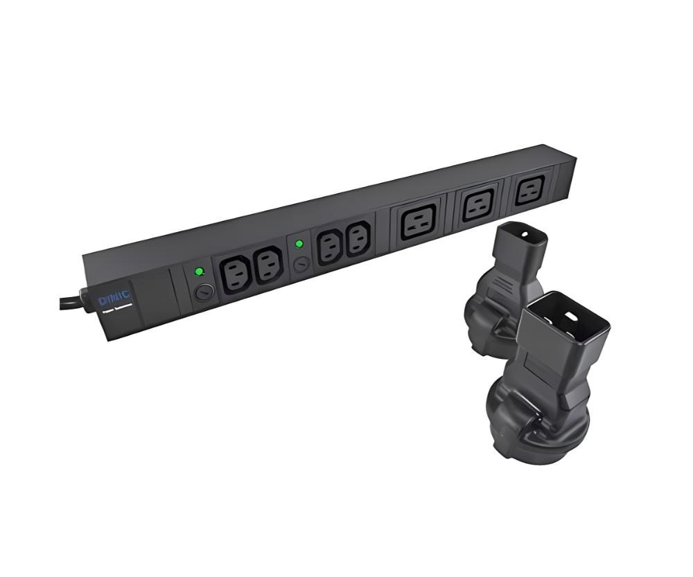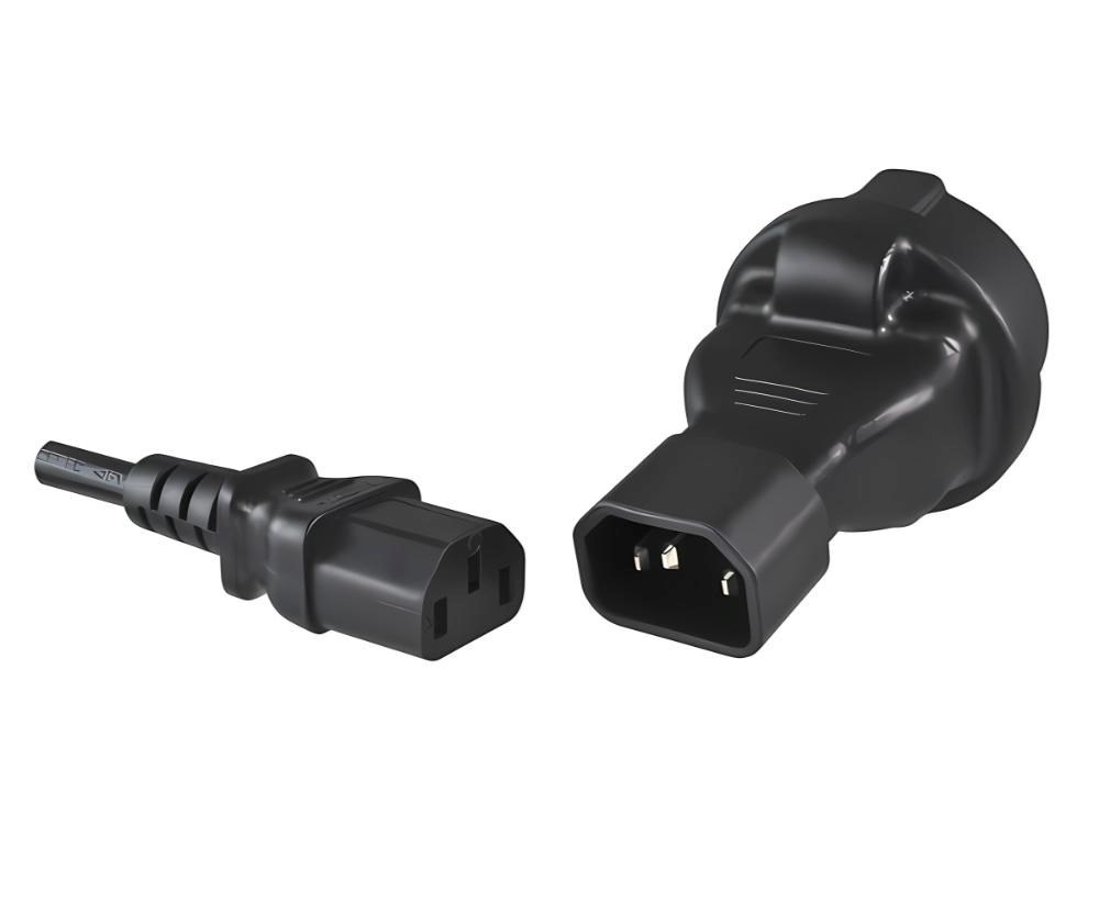 Napájecí adaptér v černém provedení pro UPC, se vstupním konektorem IEC C14 (max. 10 A) a výstupní zásuvkou SCHUKO CEE 7/3 (max. 16 A). Výstupní zásuvka je rovná, německého typu, s ochrannými plíšky po stranách, vhodná pro připojení vidlic vybavených zemnícími plíšky. Je velmi důležité zajistit, aby proud odebíraný ze zásuvky nikdy nepřekročil 10 A, aby nedošlo k přetížení vstupního konektoru C14.