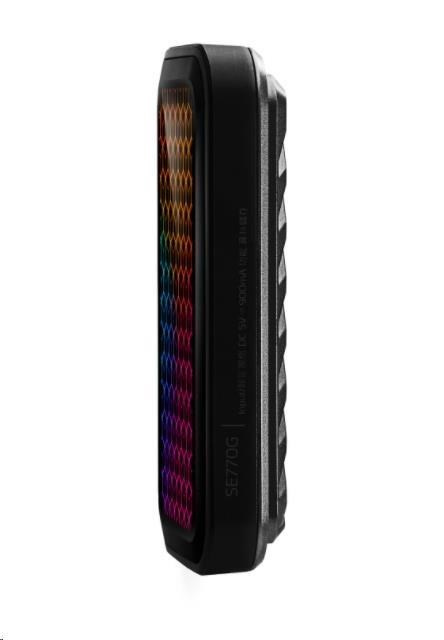 The SE770G isn't your typical run-of-the-mill external SSD. With a spacious panel of RGB, it will light up your work space with a glorious cube-patterned effect.