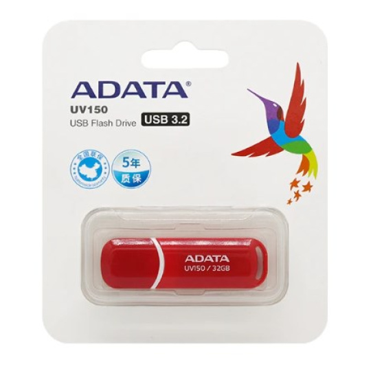 ADATA Flash Disk 32GB UV150, USB 3.1 Dash Drive (R:90/W:20 MB/s) červená