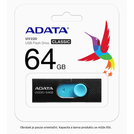 ADATA Flash Disk 32GB UV220, USB 2.0 Dash Drive, černá/modrá