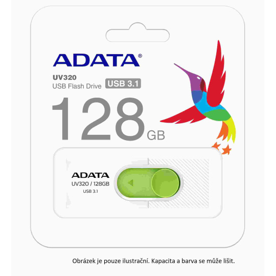 ADATA Flash Disk 64GB UV320, USB 3.1 Dash Drive, bílá/zelená
