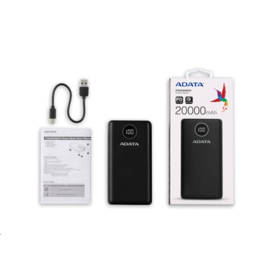 ADATA PowerBank P20000QCD - externí baterie pro mobil/tablet 20000mAh, 2,1A, černá (74Wh)