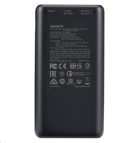 ADATA PowerBank P20000QCD - externí baterie pro mobil/tablet 20000mAh, 2,1A, černá (74Wh)