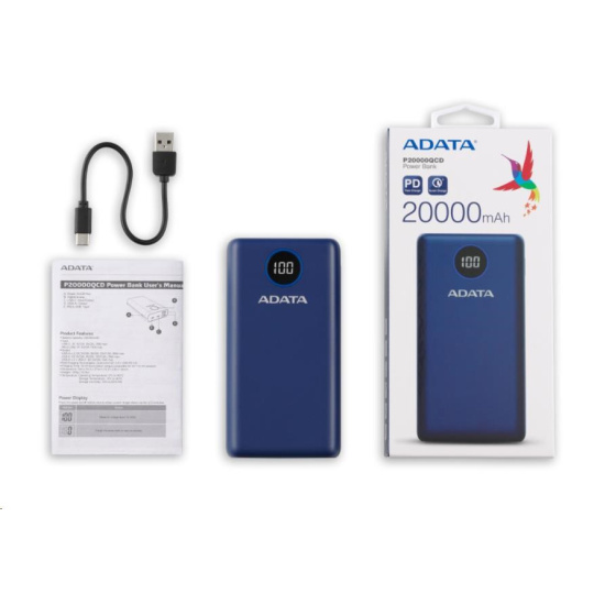 ADATA PowerBank P20000QCD - externí baterie pro mobil/tablet 20000mAh, 2,1A, modrá (74Wh)