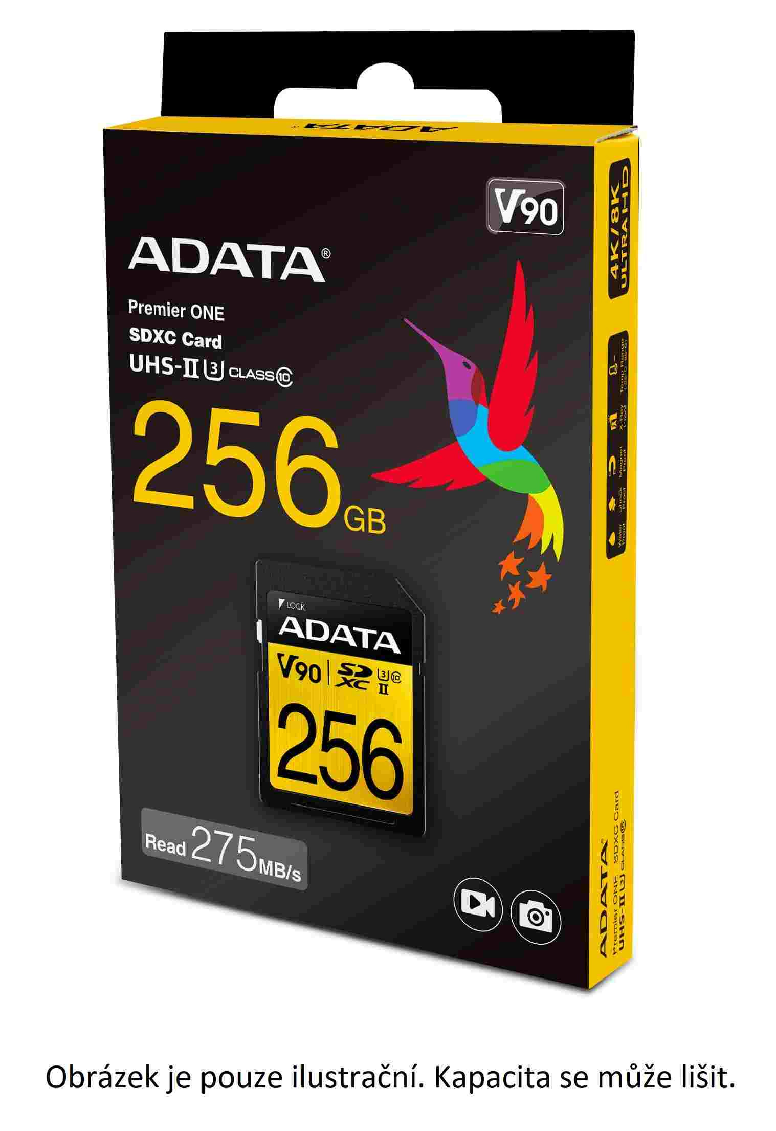 | R/W Performance | up to 290MB/260MB per sec (64GB/128GB), 275/155MB per sec (256GB) *Read/write speed based on ADATA internal testing, actual performance may vary. Max speeds only when paired with UHS-II compatible device |