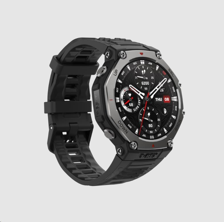 Díky rámečku vojenské kvality z nerezové oceli jsou hodinky Amazfit T-Rex 3 připraveny na jakoukoliv výzvu, pro kterou se rozhodnete, a jsou odolné vůči extrémním teplotám, vlhkosti, nárazům a dalším vlivům.