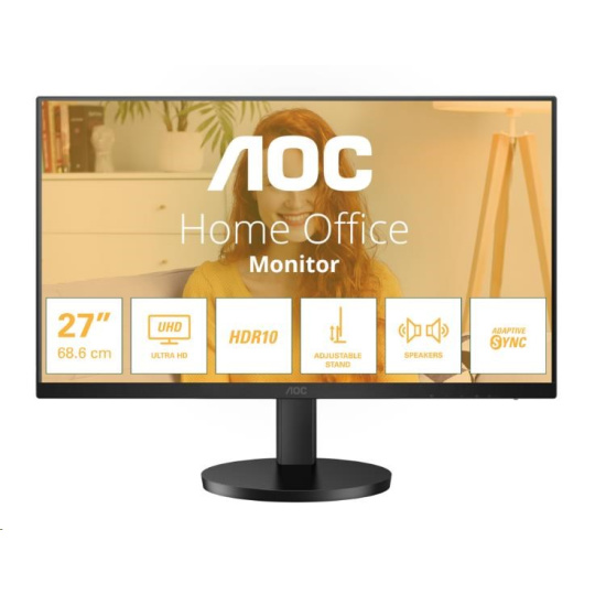 Zvyšte svou produktivitu na maximum s monitorem AOC U27B3AF. Tento 27palcový UHD monitor se může pochlubit plynulou obnovovací frekvencí 60 Hz a elegantním třístranným bezrámečkovým designem, který zajišťuje pohodlné sledování. Dejte sbohem namáhání krku díky výškově nastavitelnému stojanu, který poskytuje ergonomické funkce pro vaše držení těla. Díky technologii Adaptive Sync si navíc vychutnáte obraz bez slz a ohromně čistá grafika s podporou HDR10 zvýší váš vizuální výkon. Díky vestavěnému 2wattovému reproduktoru si můžete dopřát lepší zvukový zážitek.