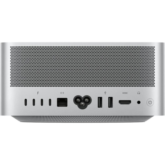 Ve čtvercovém těle Macu Studio s rozměry 19,7 × 19,7 cm se ukrývá chladicí systém, který čipu M4 Max nebo M3 Ultra umožňuje zvládat nejnáročnější úlohy ohromnou rychlostí. I při maximálním zápřahu je Mac Studio naprosto neslyšný, takže tě při práci nikdy neruší.