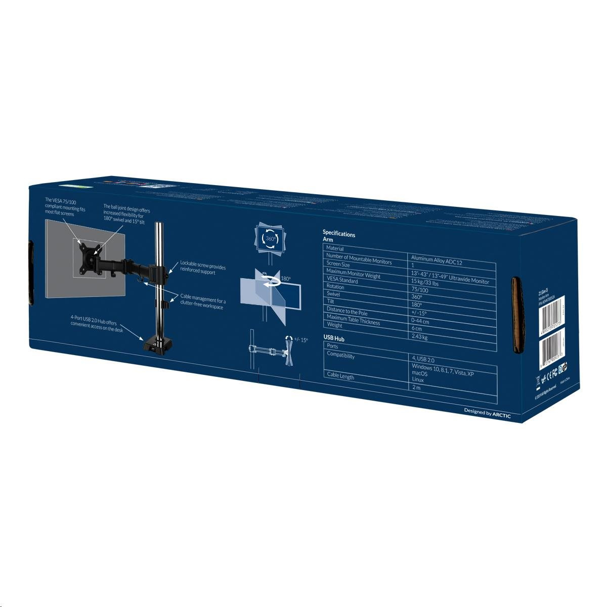 ARCTIC stolní držák Z1 (Gen.3) pro 1x LCD do 43", nosnost 15kg, USB HUB, černý (black)
