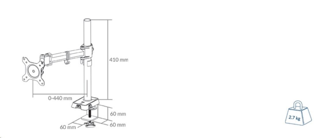 Classic 16:9 monitors are also compatible (up to 43 inches). The Z1 supports a total load of 15 kg/33 lbs.