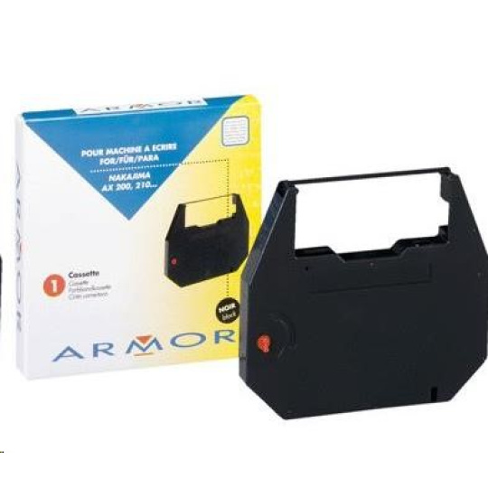 Barvicí páska ARMOR F80761 pro NAKAJIMA AX 210C karbonová Barvicí páska ARMOR F80761 pro NAKAJIMA AX 210C karbonová, gr.186C, rozměr 8mm x 155m, v balení 1ks.