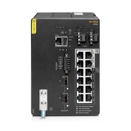 Aruba 4100i 12-port 1GbE (8-port Class 4 POE and 4-port Class 6 POE) 2-port SFP+ DIN Mount Switch