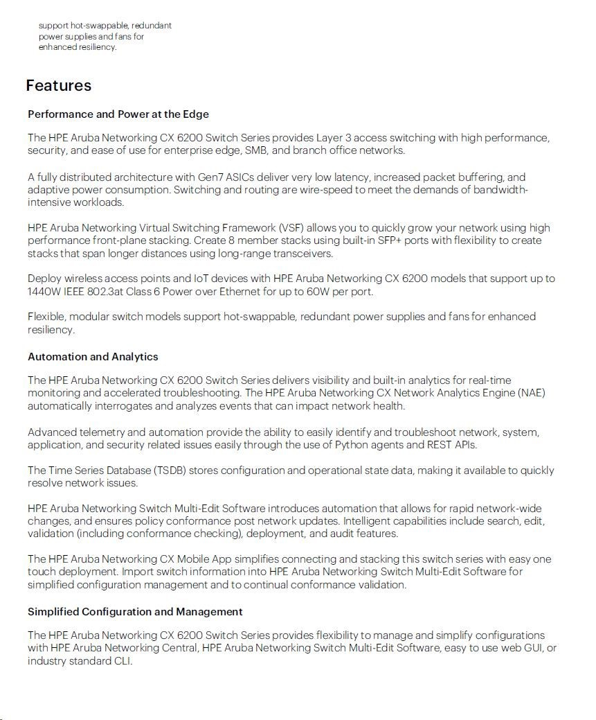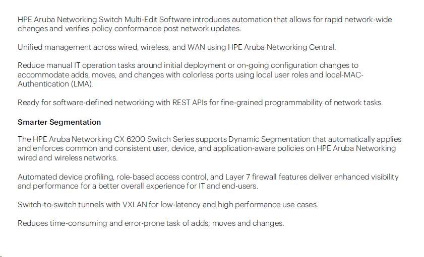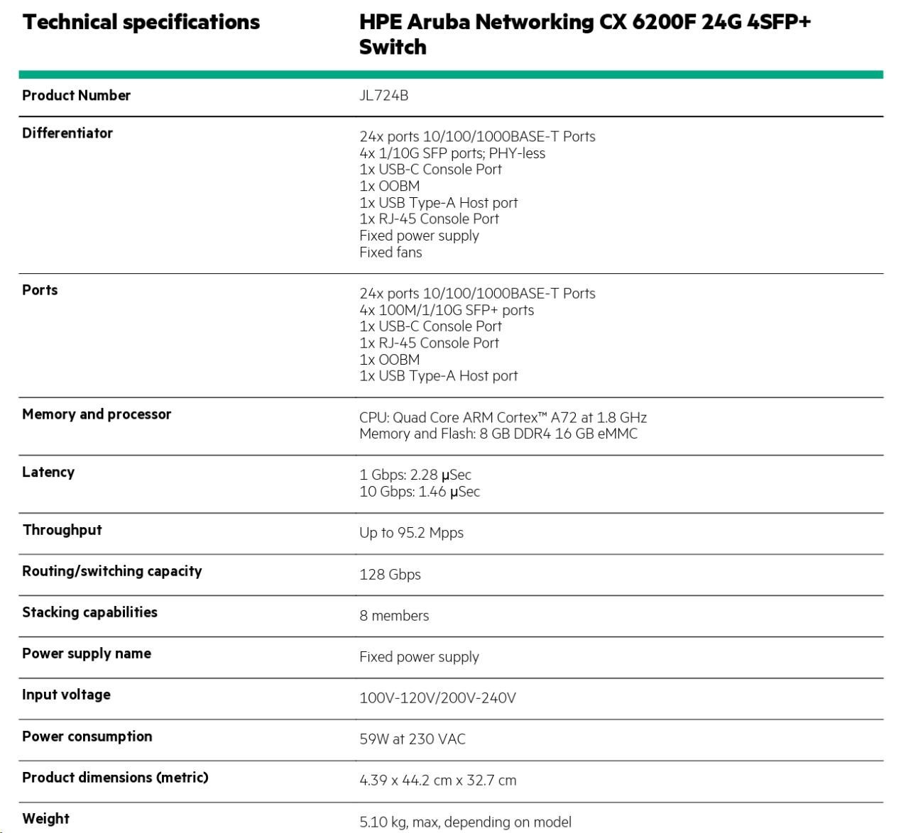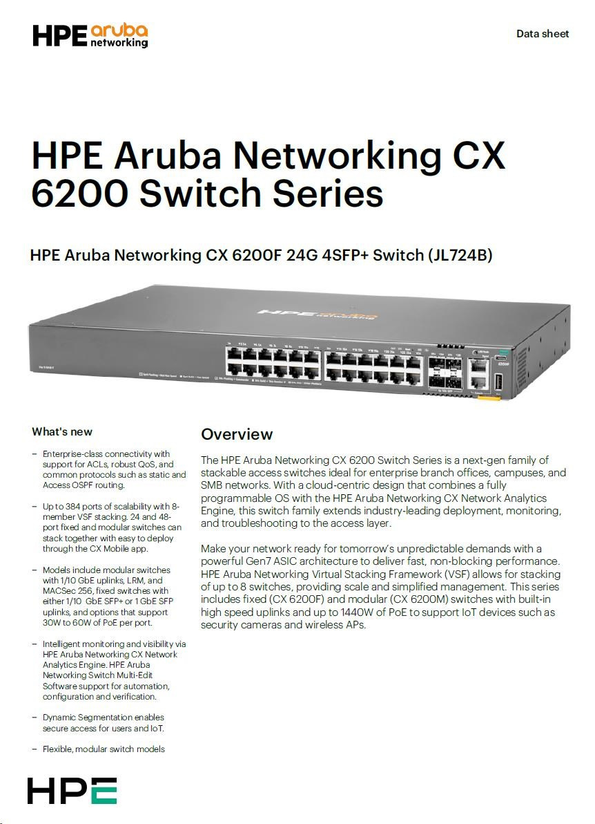 | HPE Aruba Networking CX 6200F 24G 4SFP+ Switch (JL724A) | ||