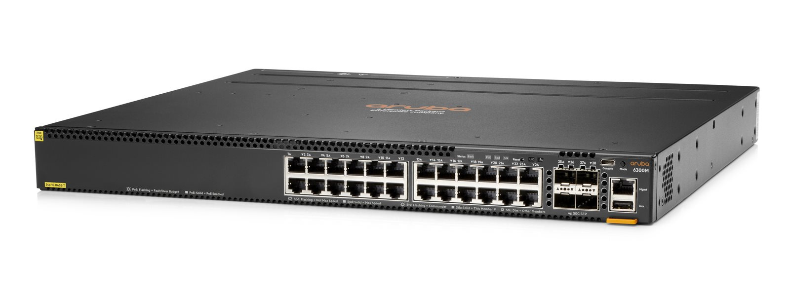 HPE Aruba Networking 6300M 24-port 1GbE Class 4 PoE and 4-port SFP56 Switch.