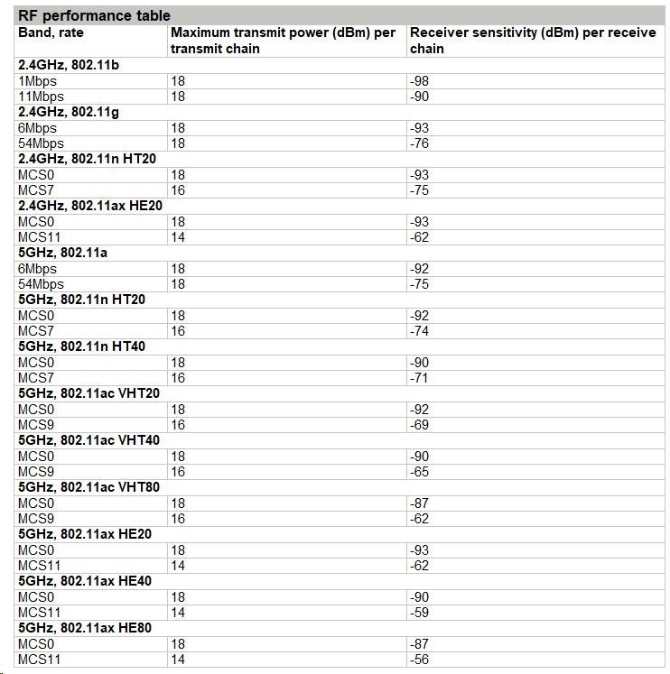 - Standard: 802.11a / n / ac / ax
