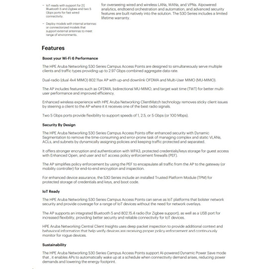 | Aruba 530 Series Campus Access Points | |