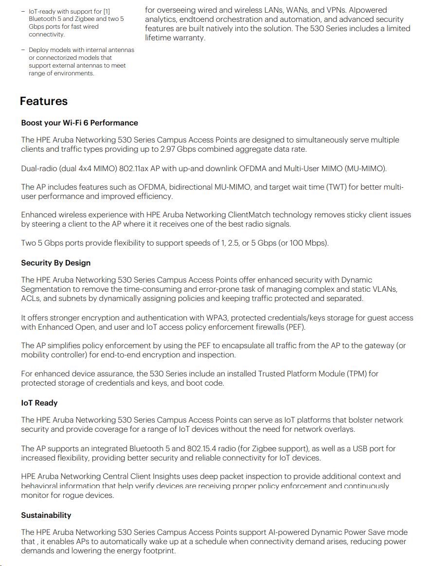 | Aruba 530 Series Campus Access Points | |