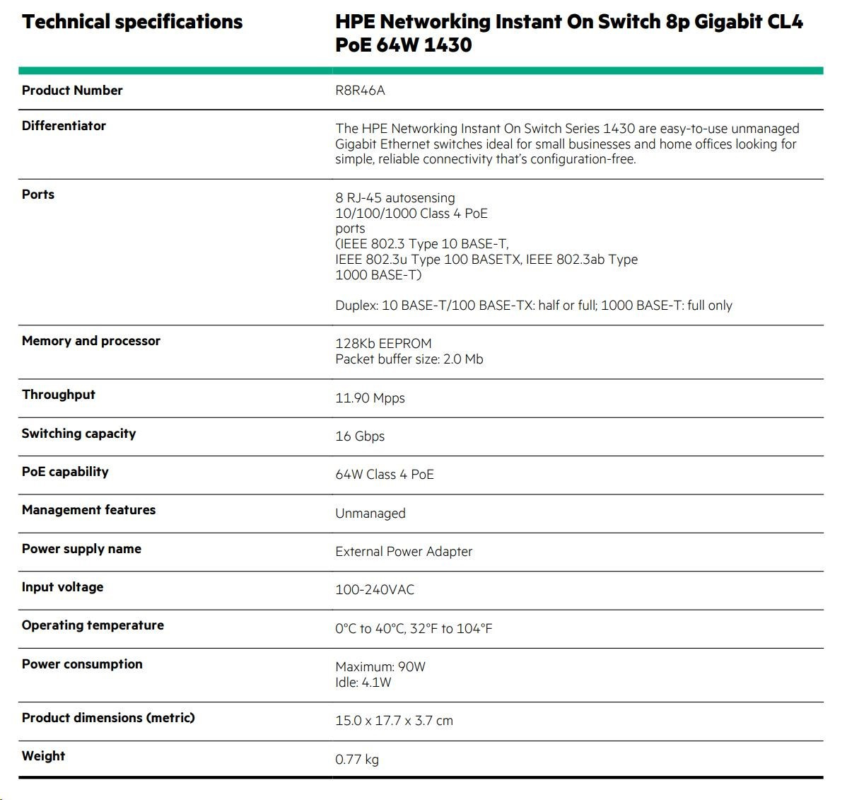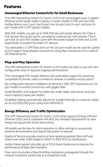| Aruba Instant On 1430 8G Class4 PoE 64W Switch (R8R46A) | |