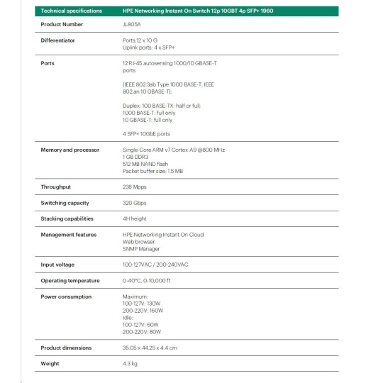 HPE Networking Instant On Switch 12p 10GBT 4p SFP+ 1960 (JL805A)