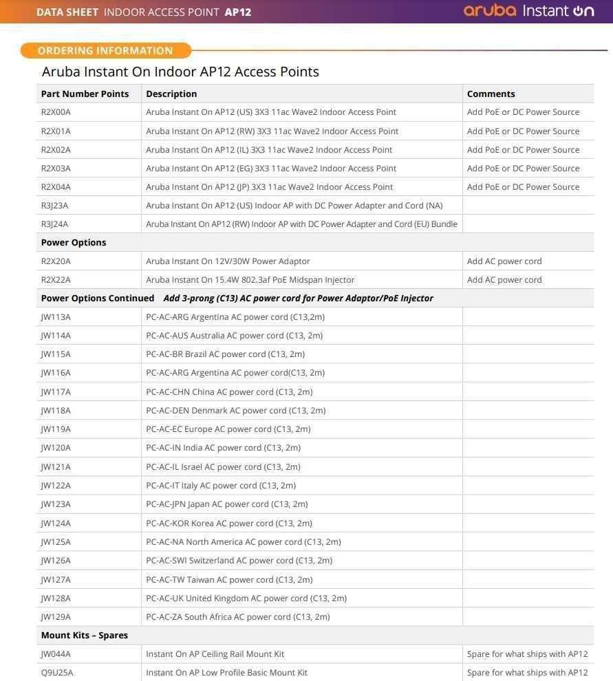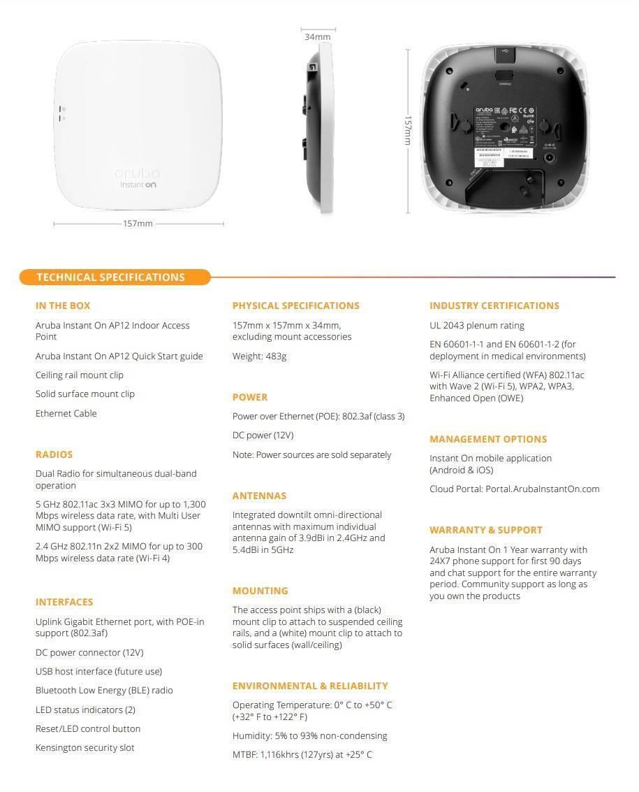 Aruba Instant On AP12 (RW) 3x3 11ac Wave2 Indoor Access Point (R2X01A)