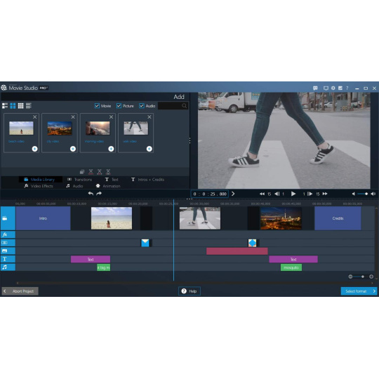Slušný software pro střih videa by měl podporovat více výstupních formátů, aby pokryl široké spektrum stacionárních zařízení a webových portálů. Proto Movie Studio Pro 3 nejenže exportuje do vanilkových formátů AVI, MKV, MP4 a WMV, ale také poskytuje optimalizované exportní profily pro Facebook, YouTube, Dailymotion a podobné portály. Program také obsahuje optimalizované profily pro mobilní zařízení od společností Apple, Samsung, Lenovo, Microsoft, Sony a dalších výrobců. Zbývá jen vybrat požadovanou výstupní kvalitu a můžete začít převádět!