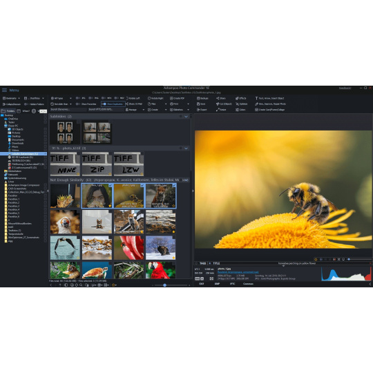 Ashampoo Photo Commander 18 odstraňuje duplicitní snímky pomocí čtyř technik současně! Vyzkoušejte nové, přizpůsobivé rozložení obrazovky, výrazně vyšší rychlost prohlížení fotografií a nové výkonné formáty! Okamžitě zjistíte, kde byly fotografie pořízeny, použijete nové efekty a využijete data XMP a EXIF pro rychlé filtrování! S novými praktickými přepínači a rozhraním navrženým tak, aby podporovalo vaše pracovní postupy, zažijete Ashampoo Photo Commander jako nikdy předtím!