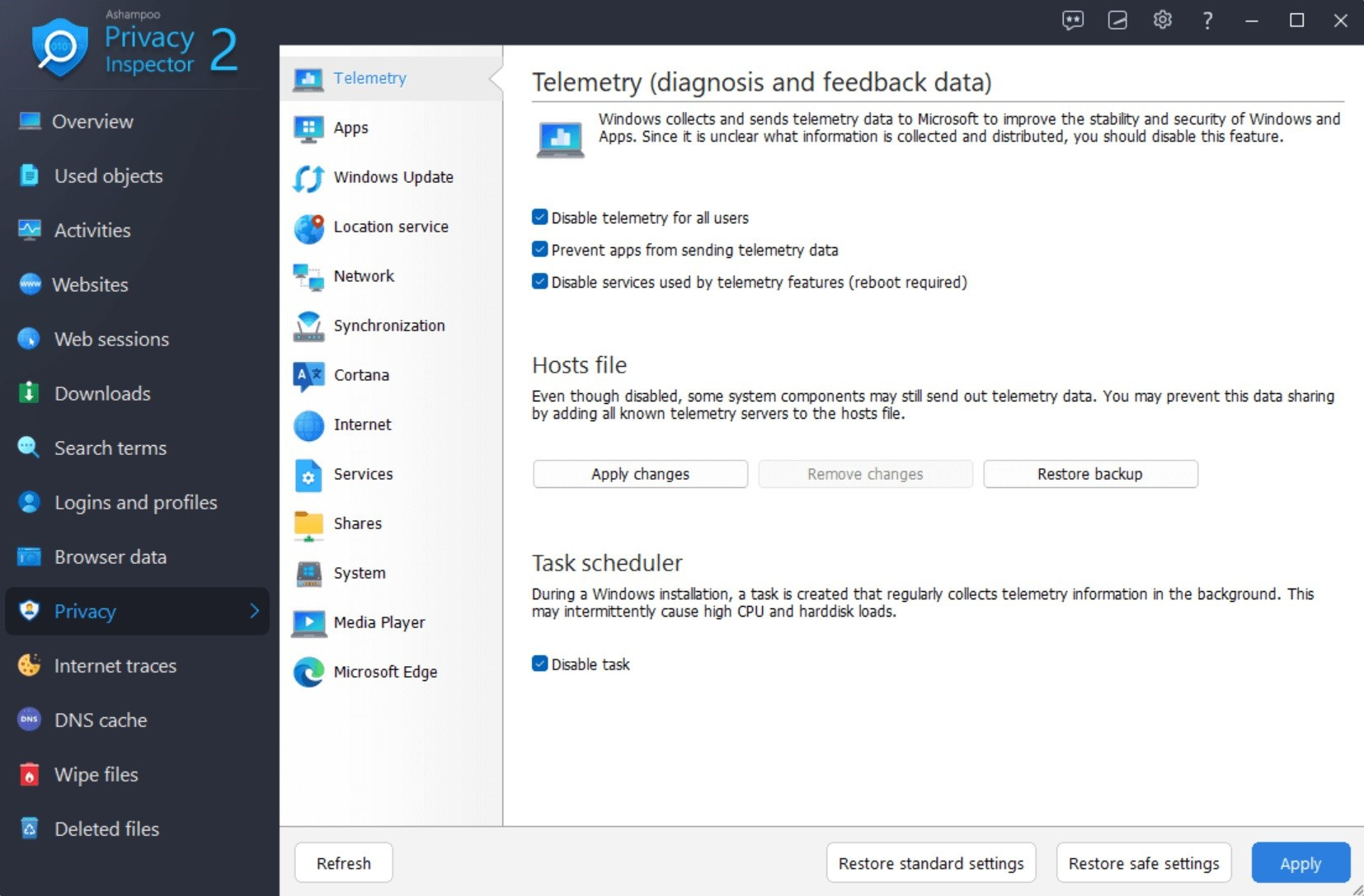 Ashampoo Privacy Inspector obsahuje vše, co potřebujete k omezení nadměrného shromažďování dat systémem Windows. Vypněte telemetrii a polohové služby, vypněte synchronizaci hesel a vypněte Cortanu. A v případě, že používáte tablet, abyste mohli se systémem Windows používat rukopis, možná vás bude zajímat, že systém Windows také odesílá vzorky vašeho rukopisu, takže to také nezapomeňte vypnout! Zabere to jen několik kliknutí.