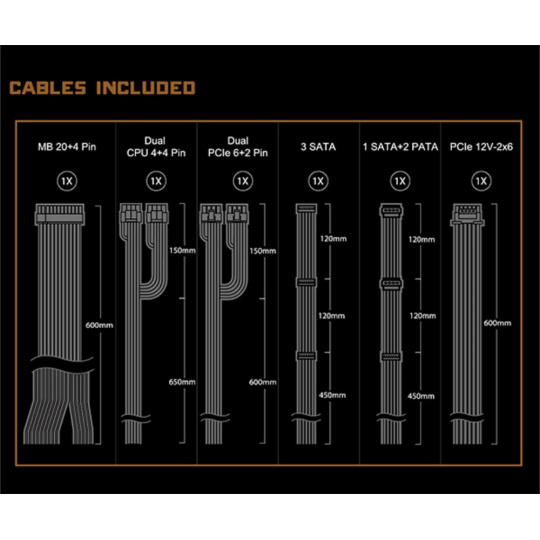 | PCIe 12V- 2x6 | 1x / 1x (600 mm) |