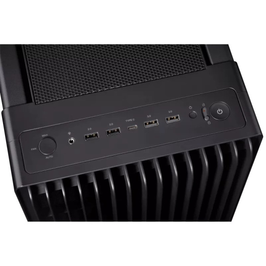 - Vynikající proudění vzduchu: 15,5 mm mřížka na předním panelu se 45% pórovitostí, dva extra silné přední ventilátory 200 x 38 mm pro maximální nasávání vzduchu a 140 mm zadní výfukový ventilátor