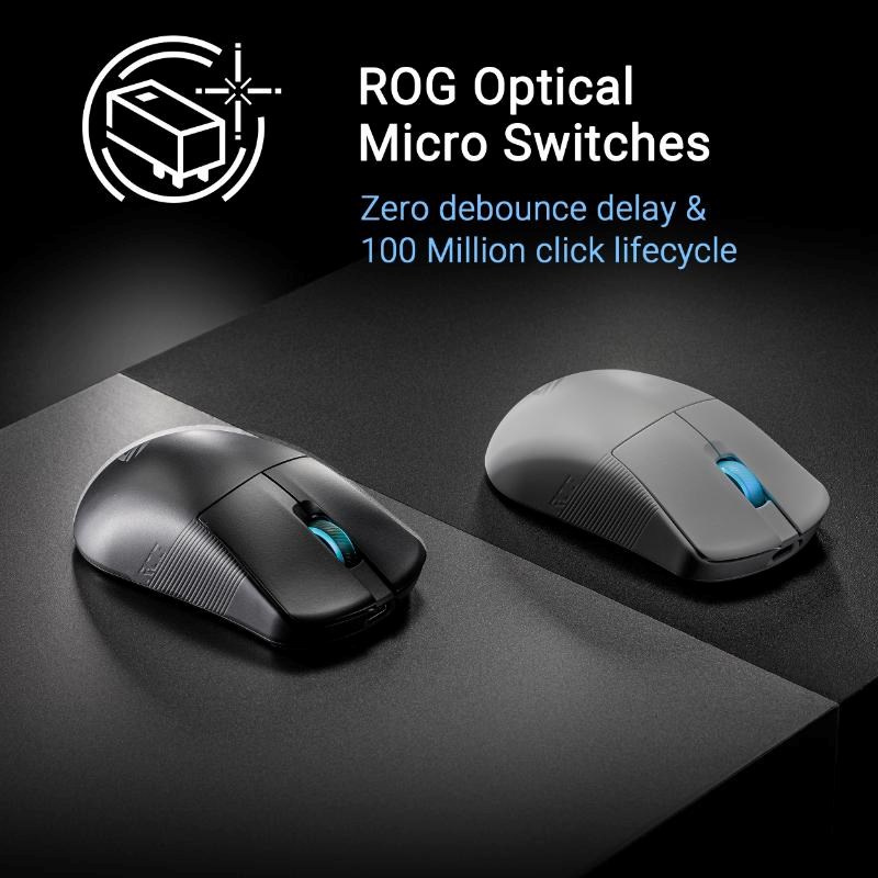 - Optické mikrospínače ROG: Okamžitá aktivace s každým ostrým kliknutím a životnost 100 milionů kliknutí