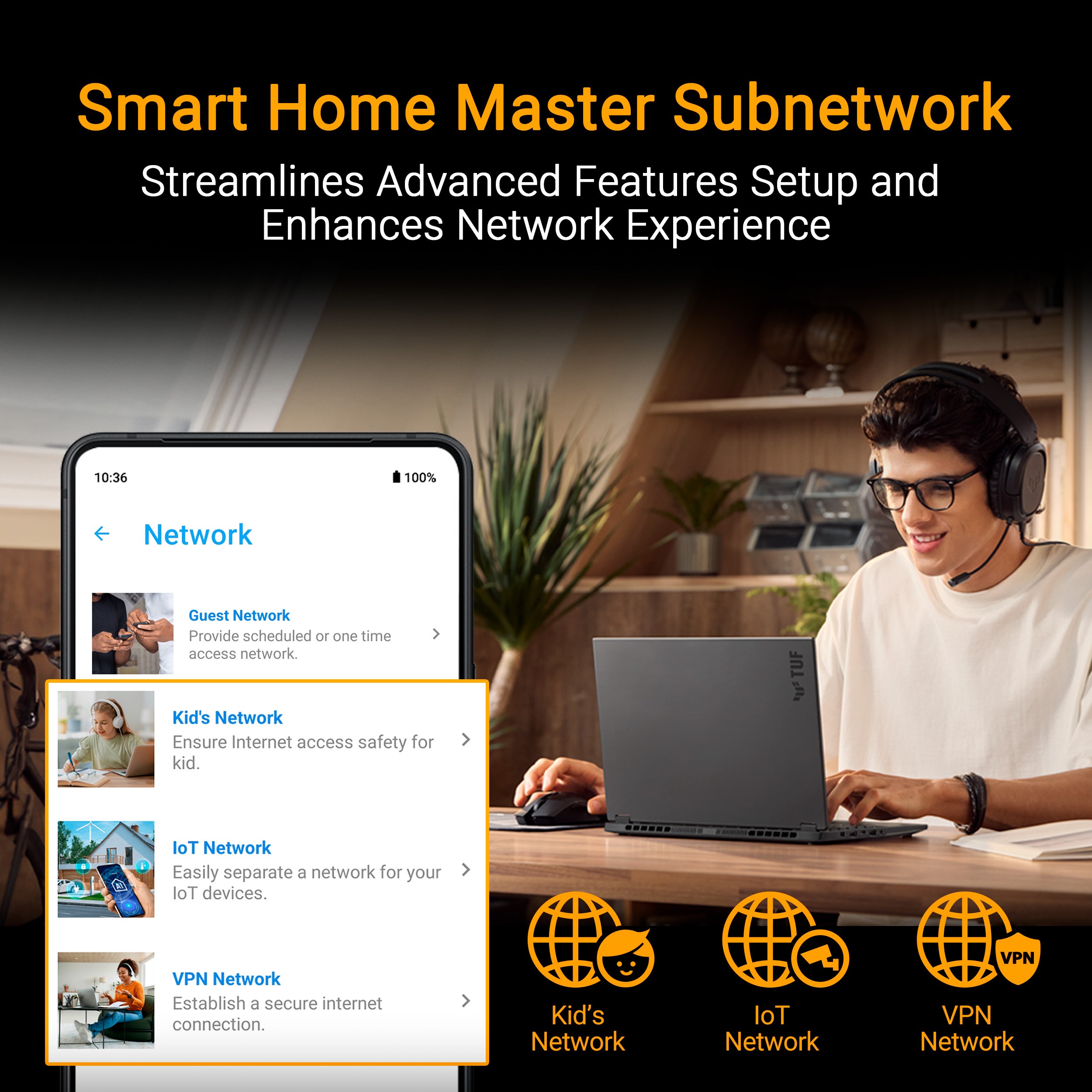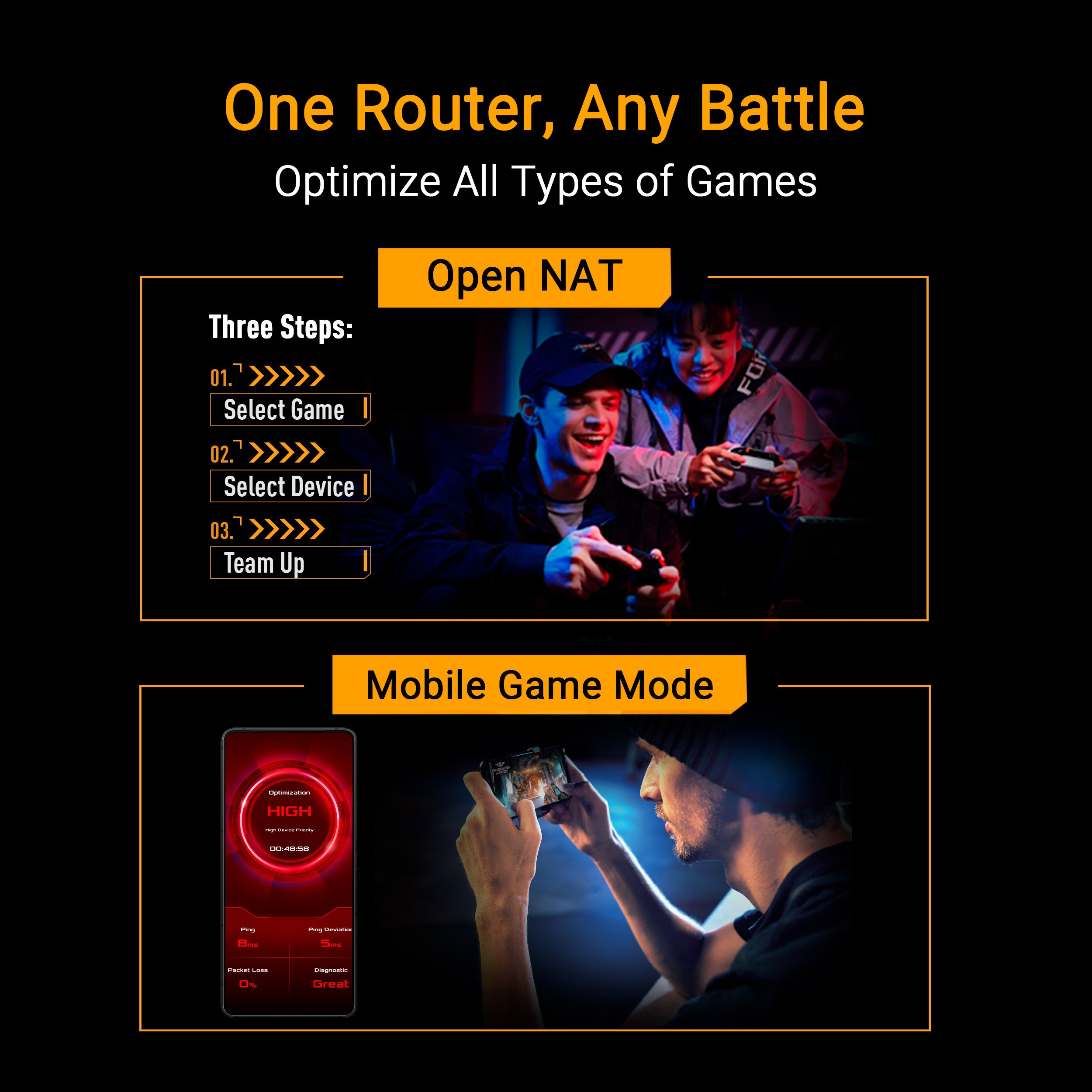 TUF Gaming BE9400 je odolný, vysoce výkonný WiFi 7 router navržený pro stabilní hraní s nízkou latencí. S rychlostmi až 9 400 Mb/s, podporou 320MHz kanálů a technologií Multi-Link Operation poskytuje rychlé a spolehlivé připojení pro všechna vaše zařízení. Nabízí čtyři 2,5G LAN porty, včetně speciálního herního portu, které zajišťují rychlé a stabilní kabelové připojení pro hraní bez zpoždění. Tento router, vytvořený tak, aby vás podpořil v každé bitvě, je připraven vždy, když jste připraveni vy.