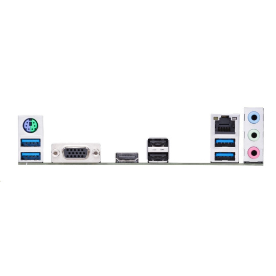 | Back I/O Ports | 1 x PS/2 keyboard/mouse combo port(s) 1 x D-Sub 1 x HDMI 1 x LAN (RJ45) port(s) 4 x USB 3.2 Gen 1 (blue) Type-A 2 x USB 2.0 3 x Audio jack(s) |