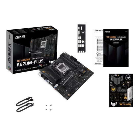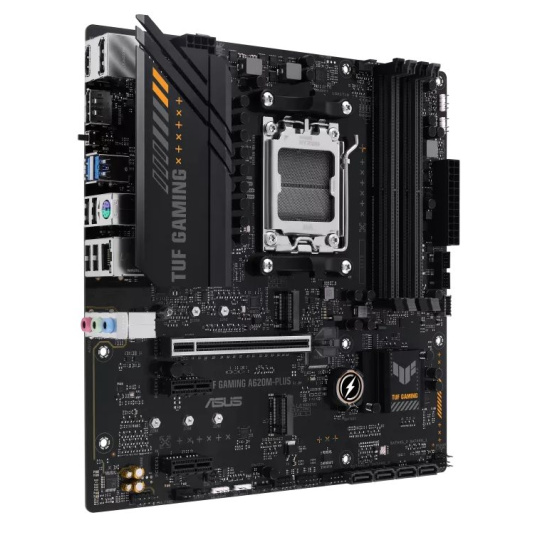 TUF GAMING A620M-PLUS is equipped with outstanding features, including 6-layer PCB design, DDR5 6400+(OC), Massive VRM Heatsink, PCIe 4.0 support, dual M.2 slots, Realtek 2.5Gb Ethernet, USB 3.2 Gen 1 ports, front USB 3.2 Gen 1 Type-C®, BIOS FlashBack™, 2 x DisplayPort, HDMI™, Addressable Gen 2 headers, Aura RGB header, Aura Sync, M.2 Q-Latch, Q-LED Core, ASUS OptiMem II, Fan Xpert 2+, Power Saving, Two-Way AI Noise Cancellation, Armoury Crate, ASUS TUF PROTECTION and SafeSlot Core+, which will bring users maximizing performance, stability and compatibility for the very best DIY PC experiences.