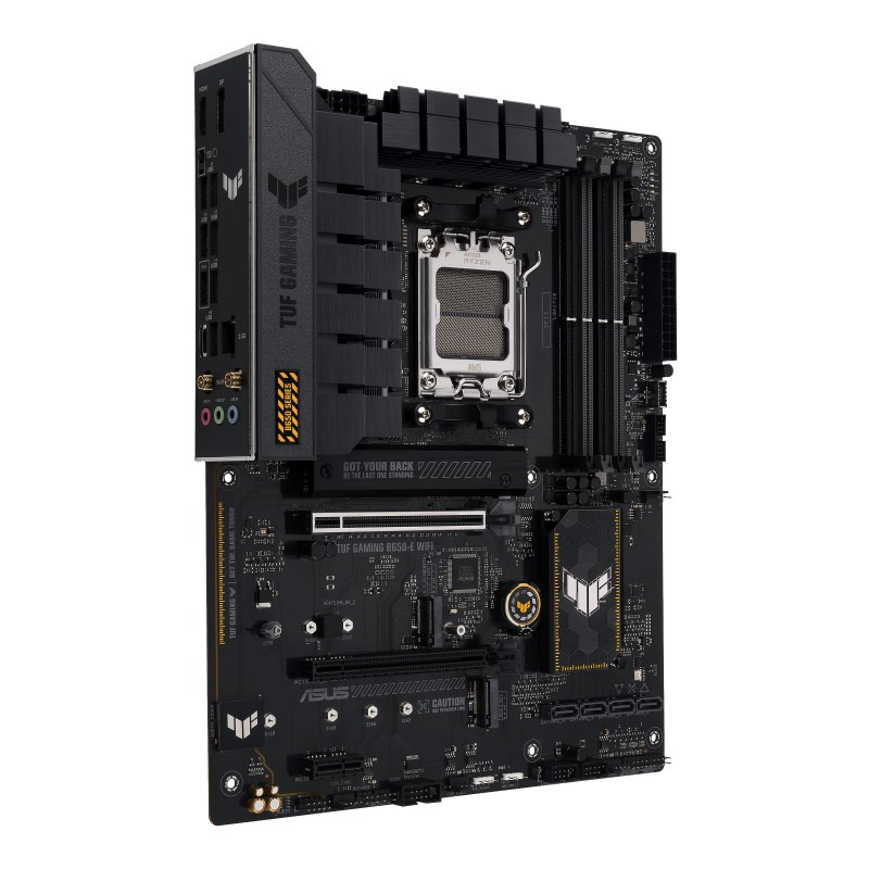 ASUS TUF GAMING B650-E WIFI využívá všechny základní prvky nejnovější patice AM5 pro stolní procesory AMD Ryzen™ a kombinuje je s funkcemi připravenými ke hře a prokázanou odolností. Tato základní deska, navržená s komponentami vojenské kvality, vylepšeným řešením napájení a komplexním systémem chlazení, překonává očekávání se skálopevným a stabilním výkonem pro maratónské hraní. Základní desky TUF GAMING také procházejí přísným testováním odolnosti, aby bylo zajištěno, že zvládnou podmínky, kdy ostatní mohou selhat. Esteticky tento model zahrnuje robustní nečerné a geometrické designové prvky, které odrážejí spolehlivost a stabilitu, která definuje řadu TUF GAMING.