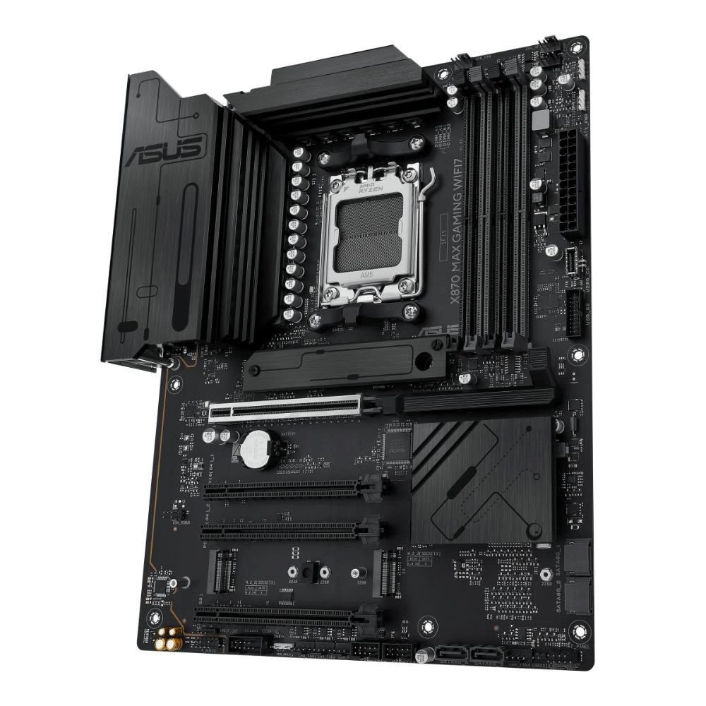 ASUS X870 series motherboards are expertly engineered to unleash the full potential of AMD Ryzen™ 9000 series processors. Boasting a robust power design, comprehensive cooling solutions and intelligent tuning options, the X870 MAX GAMING WIFI7 motherboard provides users and PC DIY builders with a range of performance optimizations via intuitive software and firmware features. It’s designed to be Advanced AI PC-ready, offering the power and connectivity needed for demanding AI applications.