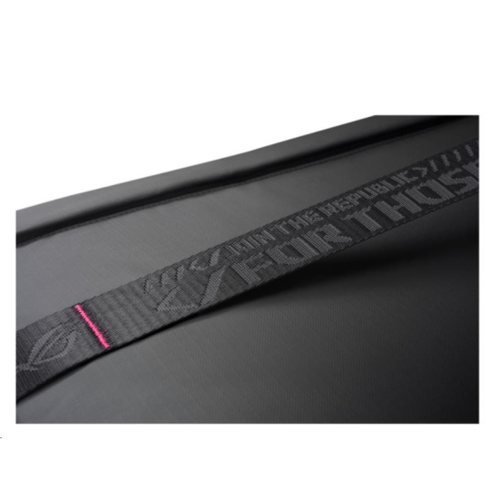 Tašku zdobí modré a růžové akcenty a prošívání, které jí dodávají barevný nádech a dávají světu najevo, že nosíte něco opravdu výjimečného. Vzheld ROG SLASH je také vybaven jedinečným monogramem ROG.