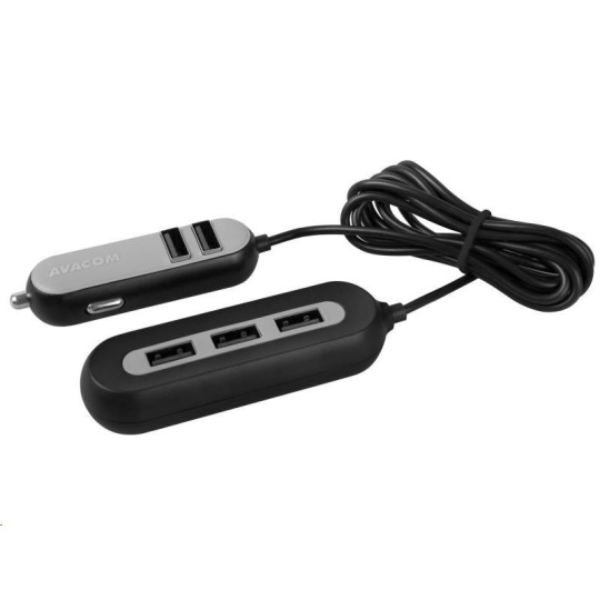 AVACOM CarHUB nabije 5 přístrojů současně. Má dvě části, které jsou spojené 1,5 m dlouhým kabelem. První část se dvěma USB výstupy lze zapojit do zásuvky autozapalovače. Další tři USB výstupy se dají pomocí praktického klipu připevnit za zadní sedadlo, což umožní nabíjení všem cestujícím v autě. Vysoký výstupní proud nabíječky (2,4 A na port a 10,8 A celkově) a výkon 54 W zaručují bezproblémové nabíjení náročných zařízení - smartphonů, tabletů nebo navigací.