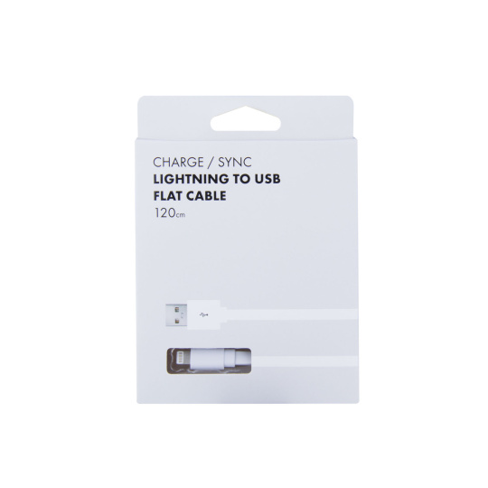 Datový a nabíjecí kabel s konektorem Lightning. Umožňuje přenášet data mezi Mac/PC a iPhonem, iPadem nebo iPodem. Délka kabelu je 120 cm. Plochý profil kabelu zamezuje zamotávání.