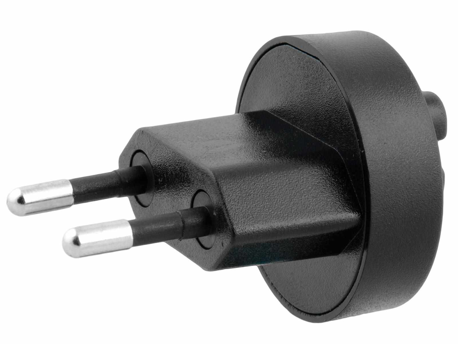 Cestovní vidlice - zástrčka, nahrazující dvoupinový kabel Vidlicová redukce pro nabíječky určená pro evropské zásuvky CEE 7/16 (Plug Type C).