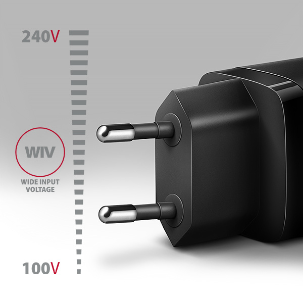 • Wide Input Voltage - funkce širokého rozsahu vstupního napětí, chrání adaptér proti podpětí a přepětí na vstupu a umožní použití více "národních napájecích standardů".