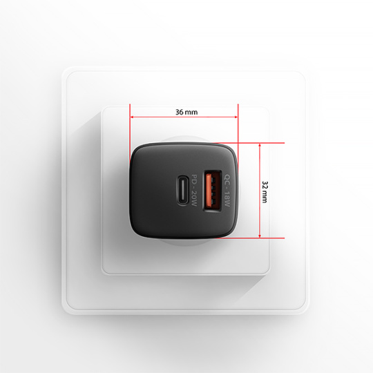 AXAGON ACU-PQ20, nabíječka do sítě 20W, 2x port (USB-A + USB-C), PD3.0/PPS/QC4+/AFC/Apple, černá