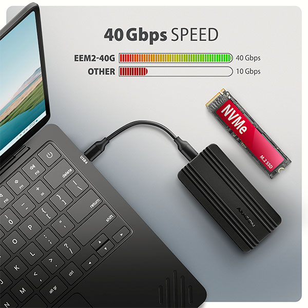 AXAGON EEM2-40G, USB-C 40Gbps externí box pro M.2 NVMe SSD, zesílený hliník