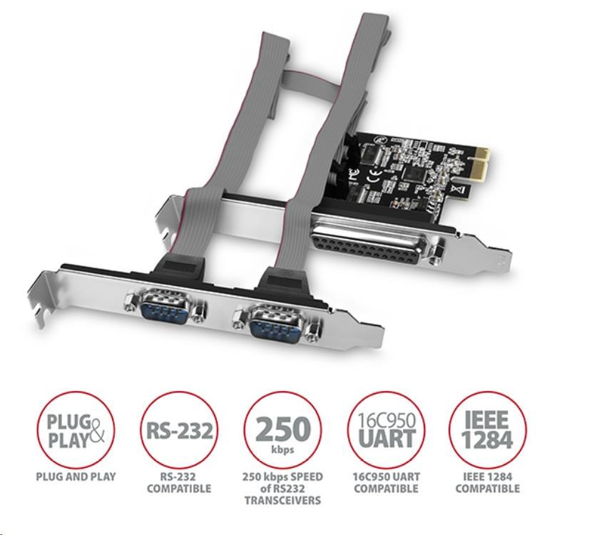 AXAGON PCEA-PSN, PCIe řadič - 1x paralelní (LPT) + 2x sériový port (RS232) 250 kbps, vč. LP